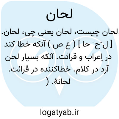 لحان. [ ل َح ْ حا ] ( ع ص ) آنکه خطا کند در اِعراب و قرائت. آنکه بسیار لحن آرد در کلام. خطاکننده در قرائت. لحانة. ( منتهی الارب ).