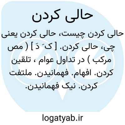 حالی کردن. [ ک َ دَ ] ( مص مرکب ) در تداول عوام، تلقین کردن. افهام. فهمانیدن. ملتفت کردن. نیک فهمانیدن. تفهیم. دریاباندن. منکشف کردن. مکشوف کردن. فهماندن. واقف کردن. تعریف کردن. معروف کردن. تنبیه کردن. متنبه کردن. منتبه کردن. مطلع کردن. ارائه کردن.