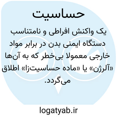 با نام پزشکی «آلرژی» نیز شناخته میشود، عبارت است از یک واکنش افراطی و نامتناسب دستگاه ایمنی بدن در برابر مواد خارجی معمولاً بیخطر که به آنها «آلرژن» یا «مادۀ حساسیتزا» اطلاق میگردد. این واکنش در واقع نشاندهندۀ برانگیختگی بیش از حد مکانیسمهای دفاعی طبیعی بدن است. هنگامی که بدن در معرض یک آلرژن قرار میگیرد، سلولهای ایمنی فعال شده و با آزاد ساختن واسطههای شیمیایی مهمی نظیر هیستامین، سروتونین، مادّۀ واکنشدهندۀ کُند (Slow-Reacting Substance) و برادیکینین، پاسخ التهابی را آغاز میکنند. آزاد شدن هیستامین به عنوان یکی از اصلیترین این واسطهها، دو پیامد فیزیولوژیک حاد را به دنبال دارد: اولاً، افزایش نفوذپذیری دیوارهی رگهای خونی کوچک و در نتیجه نشت مایع از آنها به بافتهای اطراف که در موارد شدید میتواند به کاهش ناگهانی فشار خون و از دست دادن هوشیاری منجر شود؛ این وضعیت مهلک «شوک آنافیلاکتیک» نامیده میشود. ثانیاً، هیستامین سبب انقباض عضلات صاف در اعضای داخلی، به ویژه مجاری تنفسی در ریهها، میگردد.
