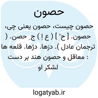 حصون. [ ح ُ ] ( ع اِ ) ج ِ حصن. ( ترجمان عادل ). دزها. دژها. قلعه ها: معاقل و حصون هند بر دست لشکر او زیر و زبر گردید. ( ترجمه تاریخ یمینی چ 1272 هَ. ق. ص 417 ).