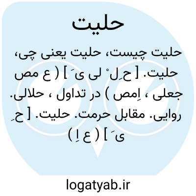 حلیت. [ ح ِ ی َ ] ( ع اِ ) حلیة. زیور. آرایش. رجوع به حلیة شود.