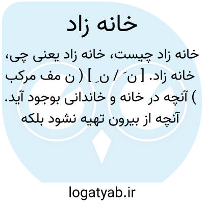 خانه زاد. [ ن َ / ن ِ ] ( ن مف مرکب ) آنچه در خانه و خاندانی بوجود آید. آنچه از بیرون تهیه نشود بلکه اصل و نسبش در خاندانی باشد. || بومی. متعلق به یک محل: صدوسی تن طاوس نر وماده آورده بود گفتندی که خانه زادند بزمین داور. ( تاریخ بیهقی ). || بنده زاد. چاکرزاد. غلام زاد. اولاد بنده. ( ناظم الاطباء ) ( آنندراج ):