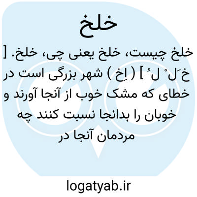 خلخ. [ خ َل ْ ل ُ ] ( اِخ ) شهر بزرگی است در خطای که مشک خوب از آنجا آورند و خوبان را بدانجا نسبت کنند چه مردمان آنجا در جمال و حسن ضرب المثل اند. ( ناظم الاطباء ). در معجم البلدان آمده نسبت به این مکان را خَلﱡخی و خَلﱡخانی گویند. رجوع به نزهت القلوب ج 3 شود. مشرق وی بعضی از حدود تبت است و حدود یغما و حدود تغزغز و جنوب وی بعضی از حدود یغما و ناحیت ماوراءالنهر است و مغرب وی حدود غور و شمال وی حدود تخس و چگل و تغزغز و این ناحیتی است آبادان و با نعمت ترین ناحیت است از نواحی ترک و اندر وی آبهای روانست وهوای معتدل است و از او مویهای گوناگون خیزد و مردمانند بمردم نزدیک و خوشخو و آمیزنده و ملوک خلخ را جبغوی خواندندی اندر قدیم و ( ببغو ) نیز خواندندی و اندر وی شهر و دههاست و این خلخیان بعضی صیادانند و بعضی کشاورزی کنند و بعضی شبانند و خواسته ایشان گوسپند است و اسب و مویهای گوناگون و مردمانی جنگی اند و تاختن برند. ( حدود العالم چ دانشگاه ص 81 ): و اندر غزنین و حدود این شهرکها که یاد کردیم جای ترکان خلخ و این ترکان خلخ نیز اندر حدود بلخ و تخارستان و بست و گوزگانان بسیارند. ( حدود العالم ). در صحراهای تخارستان جای ترکان خلخ است. ( حدود العالم ).