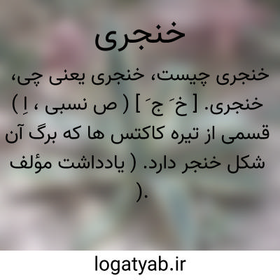 خنجری. [ خ َ ج َ ] ( ص نسبی، اِ ) قسمی از تیره کاکتس ها که برگ آن شکل خنجر دارد. ( یادداشت مؤلف ). || نام سازی است. ( آنندراج ). یک نوع طبل کوچک. ( ناظم الاطباء ): مریخ شمشیر خود را گذاشته کف به خنجری قوالان کشد. ( ملاطغرا بنقل ازآنندراج ). || منسوب به خنجر. ( یادداشت بخط مؤلف ). || رنگارنگی ابریشم. ( ناظم الاطباء ). || چون خنجر. ( یادداشت بخط مؤلف ).