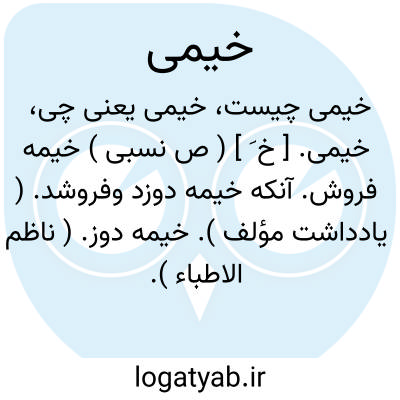 خیمی. [ خ َ ] ( ص نسبی ) خیمه فروش. آنکه خیمه دوزد وفروشد. ( یادداشت مؤلف ). خیمه دوز. ( ناظم الاطباء ).