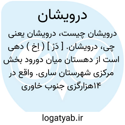 درویشان. [ دَرْ ] ( اِخ ) دهی است از دهستان ایلی تیمور بخش حومه شهرستان مهاباد. واقع در 45 هزار و پانصد گزی جنوب خاوری مهاباد و 23هزارگزی خاور راه شوسه مهاباد به سردشت، با 379 تن سکنه آب آن از سیمین رود و راه آن مالرو است. ( از فرهنگ جغرافیایی ایران ج 4 ).