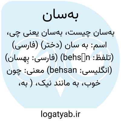 اسم: به سان (دختر) (فارسی) (تلفظ: behsān) (فارسی: بِهسان) (انگلیسی: behsan)