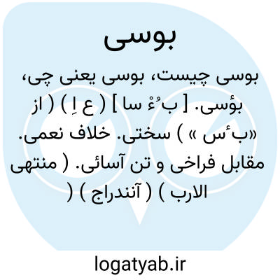 بؤسی. [ ب ُءْ سا ] ( ع اِ ) ( از «ب ٔس » ) سختی. خلاف نعمی. مقابل فراخی و تن آسائی. ( منتهی الارب ) ( آنندراج ) ( از اقرب الموارد ). رجوع به بؤس شود.