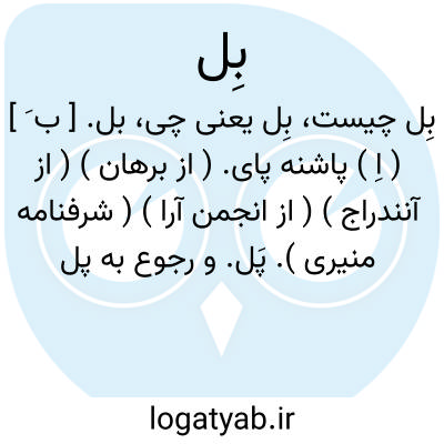 بل. [ ب َ ] ( ق ) ( تل و... ) در اصطلاح عامیانه فارسی زبانان، بالا و پایین و جابجا کردن. ( از فرهنگ لغات عامیانه ). کتل و تل: وزارت کشاورزی از بودجه خود تل و بل کرد و مقداری پیش قسط به زارعین داد. ( از نطق مهندس فریور در جلسه 26 فروردین 1323 مجلس شورای ملی دوره 14 قانونگذاری ).