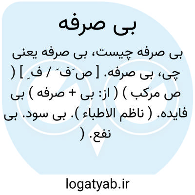 بی صرفه. [ ص َف َ / ف ِ ] ( ص مرکب ) ( از: بی + صرفه ) بی فایده. ( ناظم الاطباء ). بی سود. بی نفع. ( آنندراج ): این جنس بی صرفه است؛ بی سود است. و رجوع به صرفه شود. || بیهوده. || یاوه. بی معنی. ( ناظم الاطباء ).