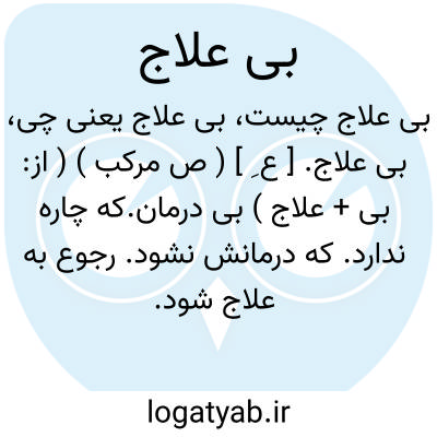 بی علاج. [ ع ِ ] ( ص مرکب ) ( از: بی + علاج ) بی درمان.که چاره ندارد. که درمانش نشود. رجوع به علاج شود.