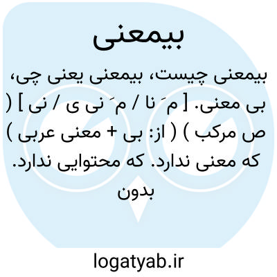 بی معنی. [ م َ نا / م َ نی ی / نی ] ( ص مرکب ) ( از: بی + معنی عربی ) که معنی ندارد. که محتوایی ندارد. بدون مفهوم. پوچ. بیهوده. باطل. ( آنندراج ) ( ناظم الاطباء ). رجوع به معنا و معنی شود: