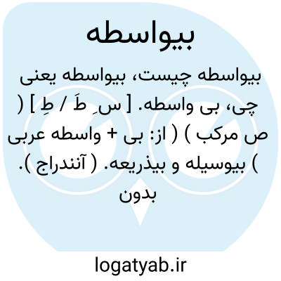 بی واسطه. [ س ِ طَ / طِ ] ( ص مرکب ) ( از: بی + واسطه عربی ) بیوسیله و بیذریعه. ( آنندراج ). بدون میانجی. ( ناظم الاطباء ). رجوع به واسطه شود. || بدون جهت و بدون سبب. ( ناظم الاطباء ). رجوع به واسطه شود.