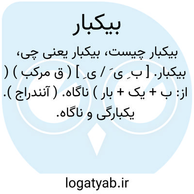 بیکبار. [ ب ِ ی َ / ی ِ ] ( ق مرکب ) ( از: ب + یک + بار ) ناگاه. ( آنندراج ). یکبارگی و ناگاه. بی خبر. دفعتاً. ( ناظم الاطباء ). || یکباره. بالتّمام: