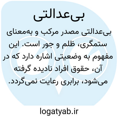 مصدر مرکب و بهمعنای ستمگری، ظلم و جور است. این مفهوم به وضعیتی اشاره دارد که در آن، حقوق افراد نادیده گرفته میشود، برابری رعایت نمیگردد و انصاف جای خود را به تبعیض و نابرابری میدهد. بیعدالتی ریشه در نادیده گرفتن اصول اخلاقی و قوانین عادلانه دارد و میتواند در سطوح فردی، اجتماعی و بینالمللی ظاهر شود. این پدیده شوم، خود را در اشکال گوناگونی همچون تبعیض در توزیع منابع، نقض حقوق بنیادین بشر، قانونشکنی توسط صاحبان قدرت و ایجاد نابرابریهای ساختاری نشان میدهد. پیامدهای بیعدالتی میتواند بسیار گسترده باشد و از ایجاد نارضایتی و کاهش اعتماد عمومی تا بروز تنشهای اجتماعی و درگیریهای جدی را در پی داشته باشد. وجود بیعدالتی، آرامش و تعادل جامعه را برهم زده و مانع اصلی در مسیر پیشرفت و توسعهی همهجانبه محسوب میشود.