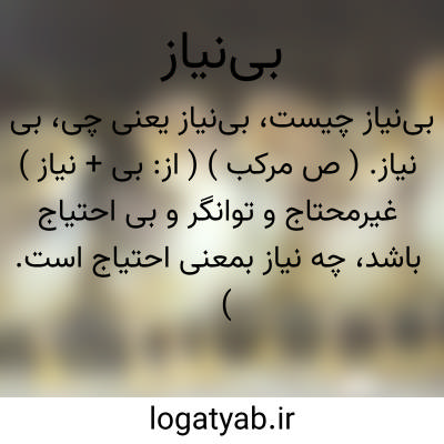 ( صفت ) بی احتیاج توانگری مالدار غنی مقابل نیازمند محتاج.