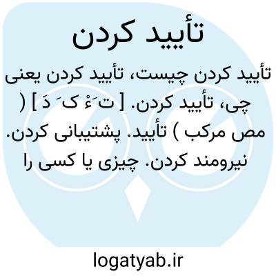 تایید پشتیبانی کردن نیرومند کردن چیزی یا کسی را موید کردن چیزی یا کسی را مورد تایید قرار دادن.