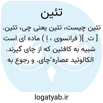تئین. [ ت ِ ]( فرانسوی، اِ ) ماده ای است شبیه به کافئین که از چای گیرند. الکالوئید عصاره ٔچای. و رجوع به چای و گیاه شناسی گل گلاب ص 204 شود.