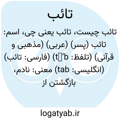 اسم: تائب (پسر) (عربی) (مذهبی و قرآنی) (تلفظ: tā’b) (فارسی: تائب) (انگلیسی: tab)