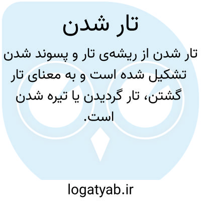 ( مصدر ) تار گشتنتیره گشتنتیره شدن تاریک شدن. یا تار شدن چشم. کاسته شدن بینایی چشم. یا تار شدن مرغ. وحشی شدن مرغ. یا تار شدن هوا. تاریک گشتن هوا.