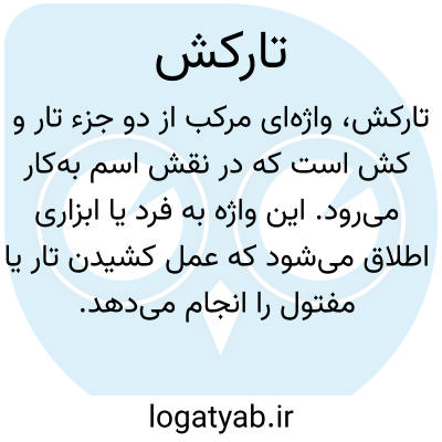 تارکش. [ ک َ / ک ِ ] ( نف مرکب ) آنکه تار کشد. ( آنندراج ). مفتول کش و زرکش. ( فرهنگ نفیسی ).