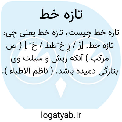 تازه خط. [زَ / زِ خ َطط / خ َ ] ( ص مرکب ) آنکه ریش و سبلت وی بتازگی دمیده باشد. ( ناظم الاطباء ). نوخط. که تازه از رخسارش خط برآمده باشد. آنکه بتازگی خط او دمیده باشد. آنکه موی تازه بر رخسارش دمیده باشد: