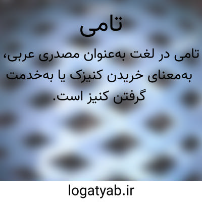 تأمی در لغت بهعنوان مصدری عربی، بهمعنای خریدن کنیزک یا بهخدمت گرفتن کنیز است. این واژه در منابع معتبر لغوی همچون زوزنی، اقربالموارد، منتهیالارب و ناظمالاطباء با همین معنا ثبت شده و بر فرایند تحصیل کنیز بهصورت قانونی و متعارف در بافتار تاریخی و اجتماعی خود دلالت دارد. در متون کهن و فرهنگهای لغت عربی، این اصطلاح بهطور خاص برای توصیف اقدام به خرید یا استخدام کنیزان بهکار رفته و بیانگر یکی از اشکال رایج معاملات و مناسبات اجتماعی در دوران پیشین است. کاربرد آن در چنین منابعی، نشاندهندهٔ جایگاه ویژهٔ این واژه در بیان پدیدههای مرتبط با نظام خدمتکاری و بردگی در تمدنهای قدیم است. امروزه این واژه بیشتر در مطالعات تاریخی، ادبی و حقوقی مورد توجه قرار میگیرد و در متون مدرن، بهدلیل تحولات اجتماعی و فرهنگی، کمتر بهکار میرود. با این حال، شناخت معنا و پیشینهٔ آن برای درک متون کلاسیک و پژوهشهای مرتبط با تاریخ اجتماعی ضروری بهشمار میآید.