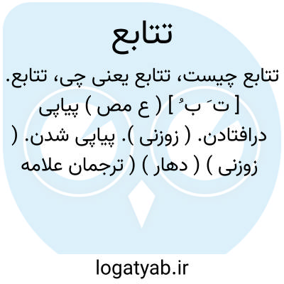 تتابع. [ ت َ ب ُ ] ( ع مص ) پیاپی درافتادن. ( زوزنی ). پیاپی شدن. ( زوزنی ) ( دهار ) ( ترجمان علامه جرجانی ) ( غیاث اللغات ) ( منتهی الارب ) ( آنندراج ) ( ناظم الاطباء ). توالی. ( اقرب الموارد ) ( قطر المحیط ). توالی و پشت هم درآمدن. ( فرهنگ نظام ): تتابعت الاخبار اذا جاء بعضها فی اثر بعض. ( اقرب الموارد ). || با یکدیگر پس روی کردن. ( منتهی الارب ) ( ناظم الاطباء ). || متناسب و مشابه بودن. ( ناظم الاطباء ).