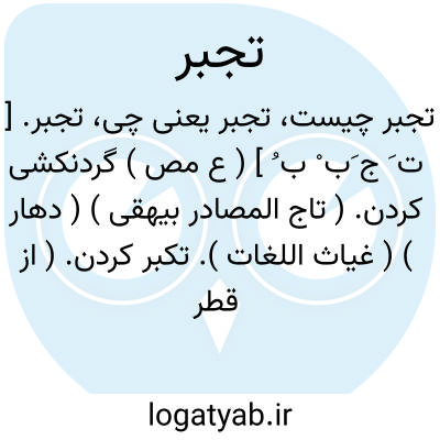 ۱- ( مصدر ) بزرگی کردن ۲.- ( اسم ) سرکشی گردنکشی گرد نفرازی.جمع: تجبرات.