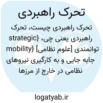 {strategic mobility} [علوم نظامی] توانمندی جابه جایی و به کارگیری نیروهای نظامی در خارج از مرزها برای پشتیبانی از راهبرد ملی