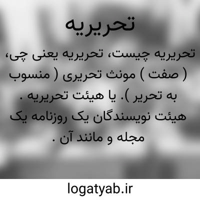 ( صفت ) مونث تحریری ( منسوب به تحریر ). یا هیئت تحریریه. هیئت نویسندگان یک روزنامه یک مجله و مانند آن.