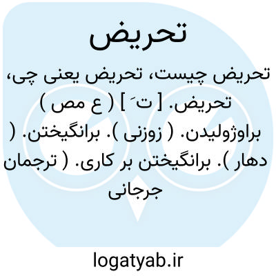 تحریض. [ ت َ ] ( ع مص ) براوژولیدن. ( زوزنی ). برانگیختن. ( دهار ). برانگیختن بر کاری. ( ترجمان جرجانی ترتیب عادل بن علی ). کسی را بر جنگ برانگیختن. ( غیاث اللغات ). برآغالانیدن و گرم گردانیدن کسی را بر چیزی. ( منتهی الارب ) ( آنندراج ) ( از ناظم الاطباء ) ( از قطر المحیط ). برانگیختن کسی را بر چیزی. ( اقرب الموارد ). گرم کردن و به شوق انداختن کسی را برای چیزی. ( فرهنگ نظام ): فقاتل فی سبیل اﷲ لاتکلف ُ الا نفسک َ وحَرِّض المؤمنین... ( قرآن 84/4 ). وزیر... پادشاه رابر جنگ تحریض نماید. ( کلیله و دمنه ). هرکه ملک را بر غدر تحریض نماید... یاران و دوستان را در منجنیق بلا نهاده باشد. ( کلیله و دمنه ). اگر زن حجام بر فساد و ناشایست تحریض و معاونت روا نداشتی مثله نشدی. ( کلیله و دمنه ). اما پادشاه عادل بر تحریض و تحریک ساعی نمام... انصاف من نمی فرماید. ( سندبادنامه ص 134 ).
