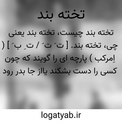 ۱- ( اسم ) پارچه ای را گویند که چون کسی را دست بشکند یا از جا بدر رود تختها بر آن نصب کنندو آن پارچه را بر آن تختها و دست شکسته پیچند. ۲- نوعی از شکنجه که دست و پای کسی را با تخته ها بندند تا او حرکت نتواند کرد. ۳- دو تخته ای که کسی را در میان آن نهند و اره بر سرش کشندتا نتواند جنبد و آنگاه دو پاره اش کنند. ۴- ( صفت ) چیزی که با تخته و نواربسته شده. ۵- محبوس در بند افتاده گرفتار. یا تخته بند بودن. اسیر و گرفتار و در بند بودن.یا تخته بند بودن دکان. بسته بودن دکان تعطیل بودن دکان.