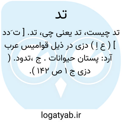 تد. [ ت َدد ] ( ع اِ ) دزی در ذیل قوامیس عرب آرد: پستان حیوانات. ج،تدود. ( دزی ج 1 ص 142 ).