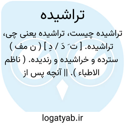 تراشیده. [ ت َ دَ / دِ ] ( ن مف ) سترده و خراشیده و رندیده. ( ناظم الاطباء ). || آنچه پس از تراشیدن بحاصل آید: چوب تراشیده، ریش تراشیده، سنگ تراشیده؛ صاف و هموار.