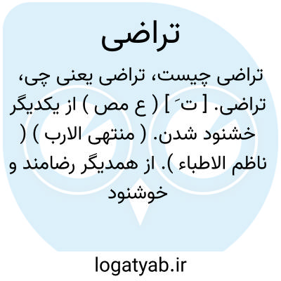 ۱-( مصدر ) از هم خشنود شدن راضی گشتن. ۲- ( اسم ) خشنودی رضایت.یا به تراضی طرفین.بخشنودی دو جانب برضایت دو طرف معامله.
