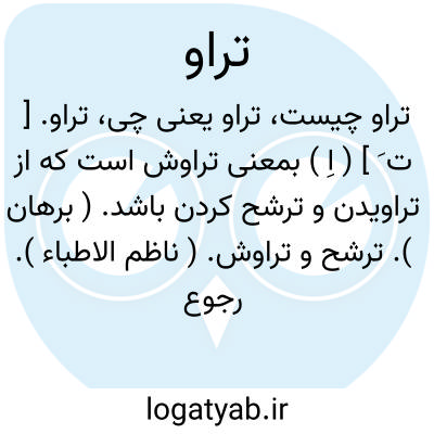 تراو. [ ت َ ] ( اِ ) بمعنی تراوش است که از تراویدن و ترشح کردن باشد. ( برهان ). ترشح و تراوش. ( ناظم الاطباء ). رجوع به تراوش و تراویدن و تَراب شود.