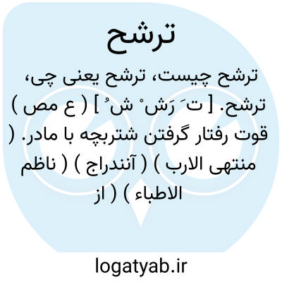 ترشح. [ ت َ رَش ْ ش ُ ] ( ع مص ) قوت رفتار گرفتن شتربچه با مادر. ( منتهی الارب ) ( آنندراج ) ( ناظم الاطباء ) ( از اقرب الموارد ) ( از المنجد ): ترشح الفصیل؛ اذا قوی علی المشی مع امه. ( منتهی الارب ) ( از اقرب الموارد ) ( ناظم الاطباء ). || جاری شدن آب از میان سنگها. ( از المنجد ). تراویدن. ( تاج المصادر بیهقی ) ( دهار ) ( آنندراج ) ( غیاث اللغات ). تراوش و تراویدگی. ( ناظم الاطباء ). بتراویدن آب. ( زوزنی ). || لیسیدن مادر رطوبت بچه را پس از تولد. ( از اقرب الموارد ) ( از المنجد ). || شایسته شدن مرد بکاری. ( از المنجد ). || و نیز ترشح در همه معانی ترشیح بطور مطاوعت استعمال می گردد. رجوع به ترشیح شود. ( ناظم الاطباء ). || ( اِ ) رطوبت. نم: