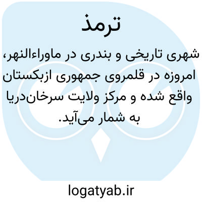 [ویکی فقه] تِرمِذ، شهر و بندری تاریخی در ماوراءالنهر، امروزه در جمهوری ازبکستان، مرکز ولایت سرخان دریا است.