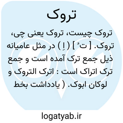 تروک. [ ت ُ ] ( اِ ) در مثل عامیانه ذیل جمع ترک آمده است و جمع ترک اتراک است: اترک التروک و لوکان ابوک. ( یادداشت بخط مرحوم دهخدا ).