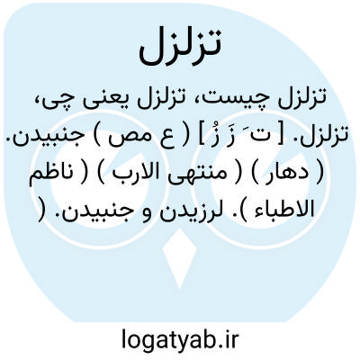 تزلزل. [ ت َ زَ زُ ] ( ع مص ) جنبیدن. ( دهار ) ( منتهی الارب ) ( ناظم الاطباء ). لرزیدن و جنبیدن. ( غیاث اللغات ) ( آنندراج ). اضطراب و تحرک. ( از متن اللغة ). || لرزیدن زمین بر اثرزلزله. ( از اقرب الموارد ) ( از المنجد ) ( از قطر المحیط ). || بازگشتن نفس در سینه هنگام مرگ. ( از متن اللغة ) ( از اقرب الموارد ). لرزیدن نفس در سینه هنگام مرگ. ( از المنجد ). || ( اِ ). جنبش واضطراب و آشفتگی و لرزش ( ناظم الاطباء ):