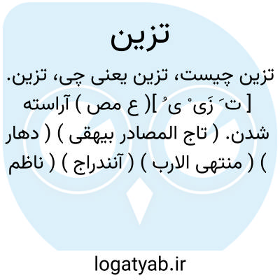 تزین. [ ت َ زَی ْ ی ُ ]( ع مص ) آراسته شدن. ( تاج المصادر بیهقی ) ( دهار ) ( منتهی الارب ) ( آنندراج ) ( ناظم الاطباء ). خویشتن را بیاراستن. ( زوزنی ). خویشتن را برآراستن. ( ترجمان جرجانی ترتیب عادل بن علی ) ( از مجمل اللغة ). نیک و آراسته شدن.( از متن اللغة ) ( از اقرب الموارد ) ( از المنجد ): تزین اصلها و تصون فرعها. ( تاریخ بیهقی چ ادیب ص 299 ).