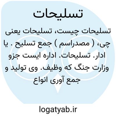 ( مصدراسم ) جمع تسلیح. یا ادار. تسلیحات. اداره ایست جزو وزارت جنگ که وظیف. وی تولید و جمع آوری انواع اسلحه است.