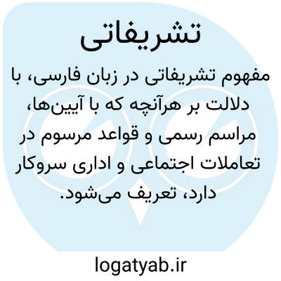 مفهوم تشریفاتی در زبان فارسی، با دلالت بر هرآنچه که با آیینها، مراسم رسمی و قواعد مرسوم در تعاملات اجتماعی و اداری سروکار دارد، تعریف میشود. این صفت، که از ریشه تشریف به معنای احترام و اکرام اخذ گردیده، دو بُعد اصلی را در بر میگیرد: بُعد نخست به ماهیت شیء یا عملی اشاره دارد که صرفاً در چارچوب یک مراسم یا آیین جای میگیرد؛ در این حالت، بیانگر جنبهٔ ظاهری و شکلی یک امر است که ماهیت کاربردی آن در درجهٔ دوم اهمیت قرار میگیرد.