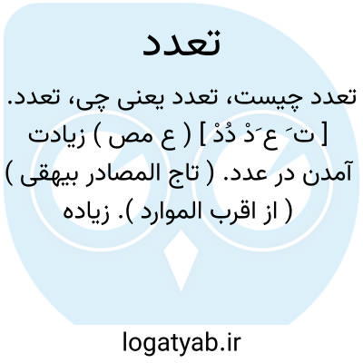 تعدد. [ ت َ ع َدْ دُدْ ] ( ع مص ) زیادت آمدن در عدد. ( تاج المصادر بیهقی ) ( از اقرب الموارد ). زیاده از هزار بودن. ( از منتهی الارب ) ( ناظم الاطباء ). هم یتعددون علی الف؛ ای یزیدون علی ذلک فی العدد. ( منتهی الارب ) ( ناظم الاطباء ) ( از اقرب الموارد ). || ( اِ ) در فارسی امروزین افزون از یک. عدد بسیار. و متعدد و فراوانی و بسیاری. ( از ناظم الاطباء ). کثرت. بسیاری. چندتائی.