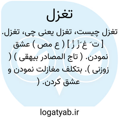 (تَ غَ زُّ ) [ ع. ] ۱ - (مص ل. ) غزل سرایی کردن، شعری عاشقانه گفتن. ۲ - عشق ورزیدن. ۳ - (اِمص. ) غزل سرایی.