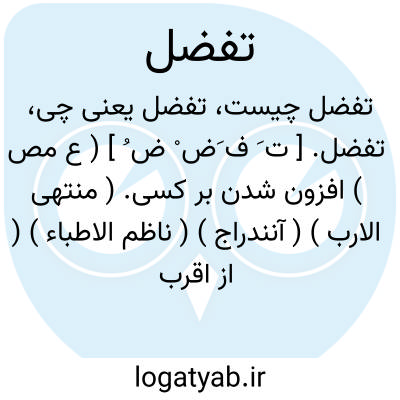 تفضل. [ ت َ ف َض ْ ض ُ ] ( ع مص ) افزون شدن بر کسی. ( منتهی الارب ) ( آنندراج ) ( ناظم الاطباء ) ( از اقرب الموارد ). برتری و فزونی. ( ناظم الاطباء ). || افزونی نمودن. || نیکویی کردن. ( منتهی الارب ) ( ناظم الاطباء ) ( از آنندراج ) ( از اقرب الموارد ). لطف و مرحمت و احسان و مهربانی و خاطرنوازی. ( ناظم الاطباء ):