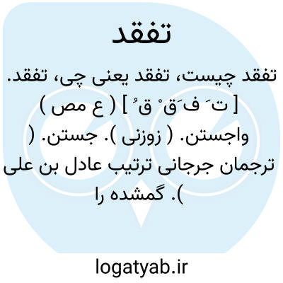 تفقد. [ ت َ ف َق ْ ق ُ ] ( ع مص ) واجستن. ( زوزنی ). جستن. ( ترجمان جرجانی ترتیب عادل بن علی ). گمشده را جستن. ( منتهی الارب ) ( ناظم الاطباء ) ( از اقرب الموارد ). گمشده را واجستن و واپرسیدن و با لفظ کردن مستعمل. ( آنندراج ). گم شده را بازجستن و پرسش نمودن و مجازاً بمعنی دلجوئی و مهربانی و غمخواری. ( غیاث اللغات ). غمخواری و دلجوئی و ملاطفت و مهربانی و ترحم. ( ناظم الاطباء ): و او در ابواب تفقد و تعهد، ایشان را انواع تکلف و تنوق واجب داشتی. ( کلیله و دمنه ). چون ابوعلی به بخارا رسید در تعهد و تفقد و اجلال واکرام قدر او مبالغت رفت. ( ترجمه تاریخ یمینی ). ابوابراهیم چادر کنیزکی که به تعهد و تفقد ایشان قیام می نمود در سر کشید و در خفارت آن زی از مجلس خویش بیرون گریخت. ( ترجمه تاریخ یمینی چ 1 تهران ص 219 ).