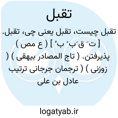 تقبل. [ ت َ ق َب ْ ب ُ ] ( ع مص ) پذیرفتن. ( تاج المصادر بیهقی ) ( زوزنی ) ( ترجمان جرجانی ترتیب عادل بن علی ) ( آنندراج ). پذیرفتن و قبول کردن. ( غیاث اللغات ). و در دعا گویند: تقبل اﷲ اعمالکم؛ یعنی خدای تعالی کردارهای شما را بپذیرد. ( یادداشت بخط مرحوم دهخدا ) ( از اقرب الموارد ). || گرفتن چیزی. ( از اقرب الموارد ). || ضامن دادن عامل.( منتهی الارب ) ( ناظم الاطباء ) ( از اقرب الموارد ). ضامن گرفتن بر کار از کارکن. ( ناظم الاطباء ). || همانند شدن مرد پدر خود را. ( از اقرب الموارد ).