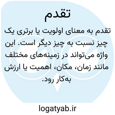 تقدّم به معنای اولویت یا برتری یک چیز نسبت به چیز دیگر است. این واژه می‌تواند در زمینه‌های مختلف مانند زمان، مکان، اهمیت یا ارزش به‌کار رود. به‌طور ساده، وقتی چیزی تقدم دارد، یعنی در مقایسه با سایر موارد در اولویت قرار گرفته یا زودتر رخ می‌دهد.